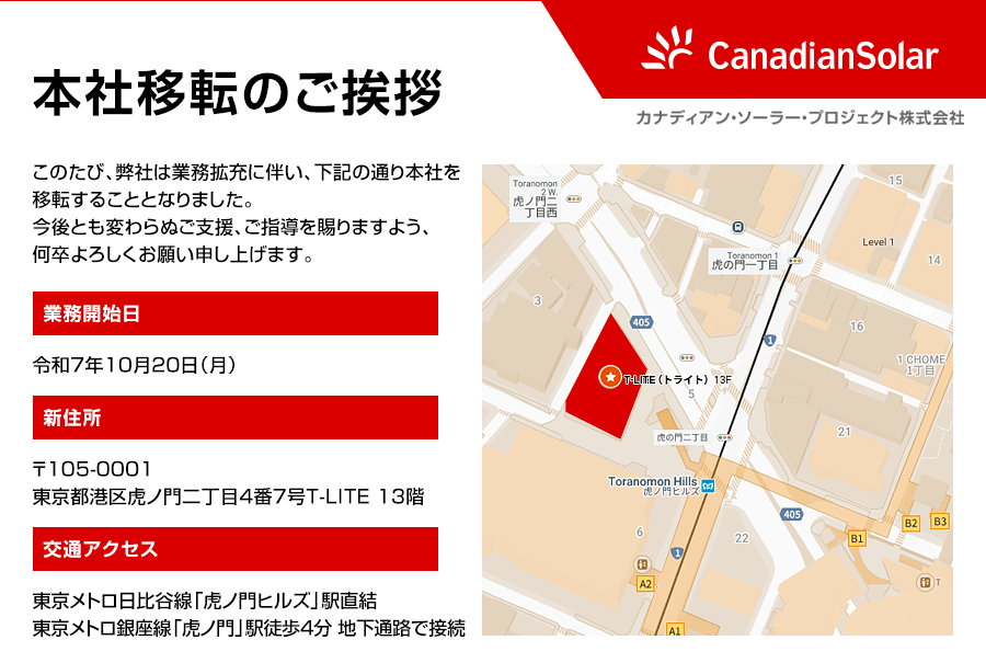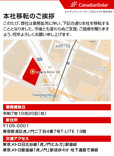 カナディアン・ソーラーの業績に関するご案内はこちらをご覧ください。業績に関するお知らせ